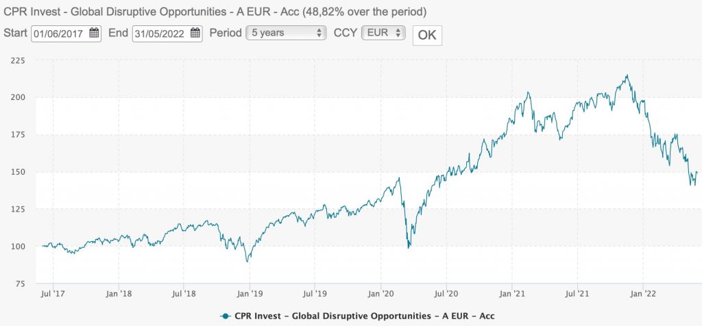 Il CPR Invest Global Disruptive Opportunities A EUR Acc, ISIN LU1530899142, è un fondo d’investimento gestito dalla società CPR Investments, a sua volta interamente controllata dal colosso francese AMUNDI.