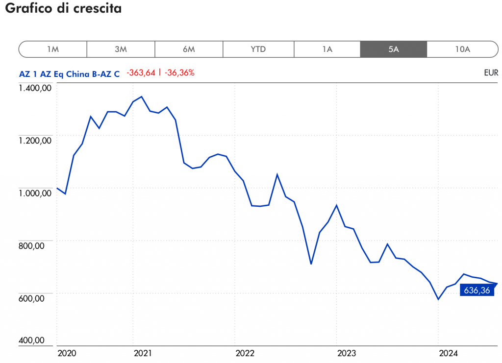 Il rendimento storico del fondo Azimut AZ Equity – China è un fattore chiave per comprendere la sua efficacia come strumento di investimento. Negli ultimi anni, il fondo ha cercato di capitalizzare il potenziale di crescita delle aziende cinesi, ma i risultati sono stati nefasti, con una performance che non ha superato il benchmark di riferimento, l’MSCI China All Shares Index.