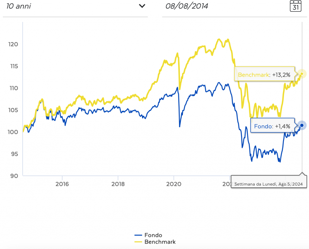 Nell’ultimo quinquennio, il fondo ha registrato un rendimento medio negativo dell’1% circa all’anno, ovvero come se deliberatamente perdesse soldi ogni anno!.