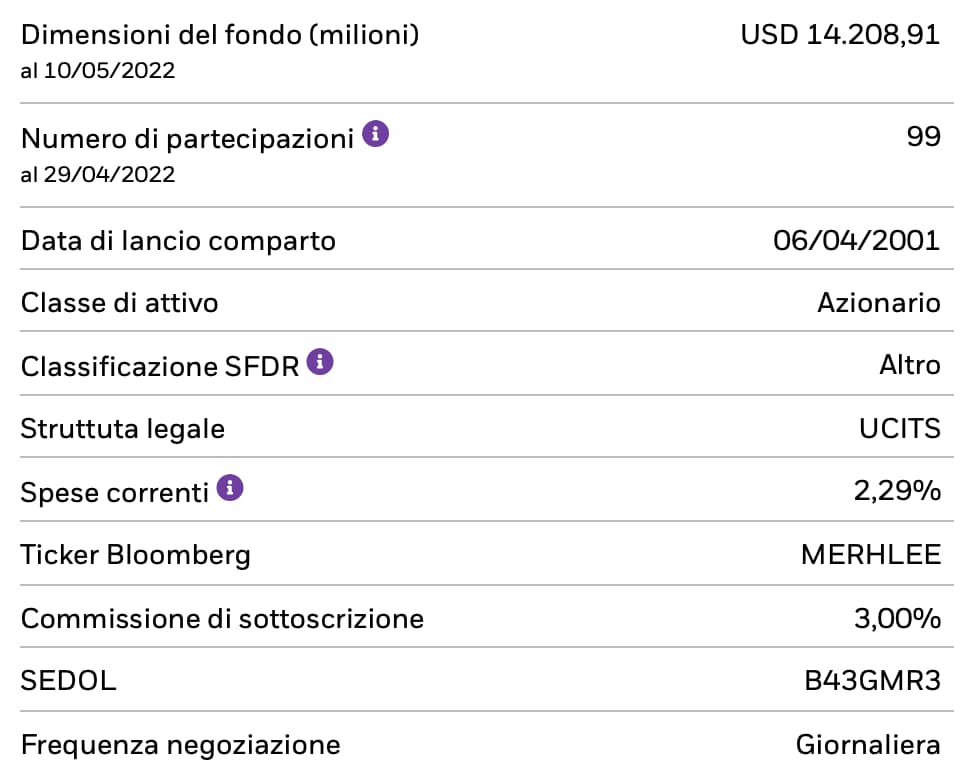 Il BlackRock World Healthscience Fund presenta le seguenti specifiche tecniche: