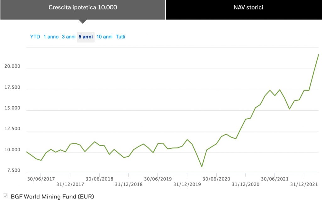 Ci piace molto il BlackRock World Mining Fund, non tanto per la volatilità, ma per un discorso di performance che sembrano abbastanza stabili e consolidate nel tempo dopo le performance degli ultimi anni.
