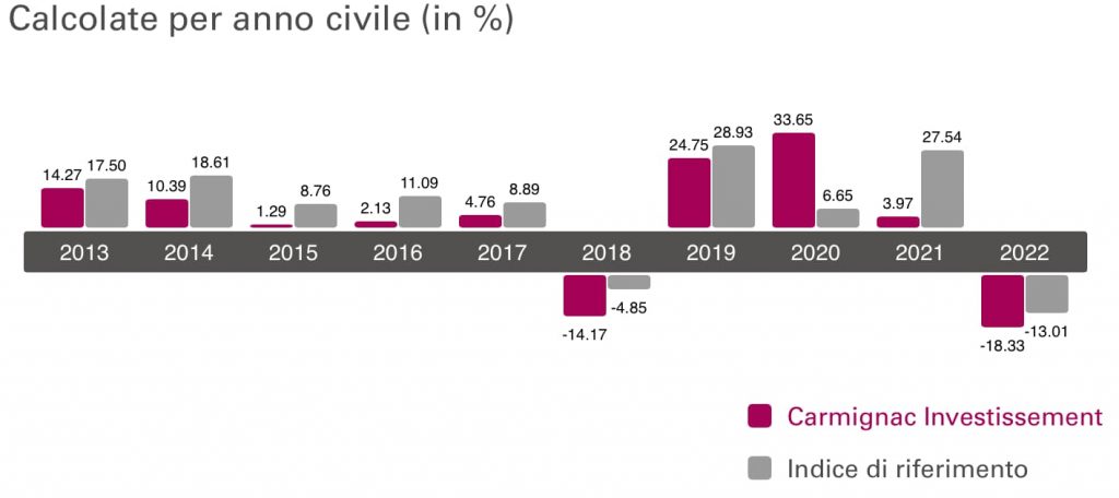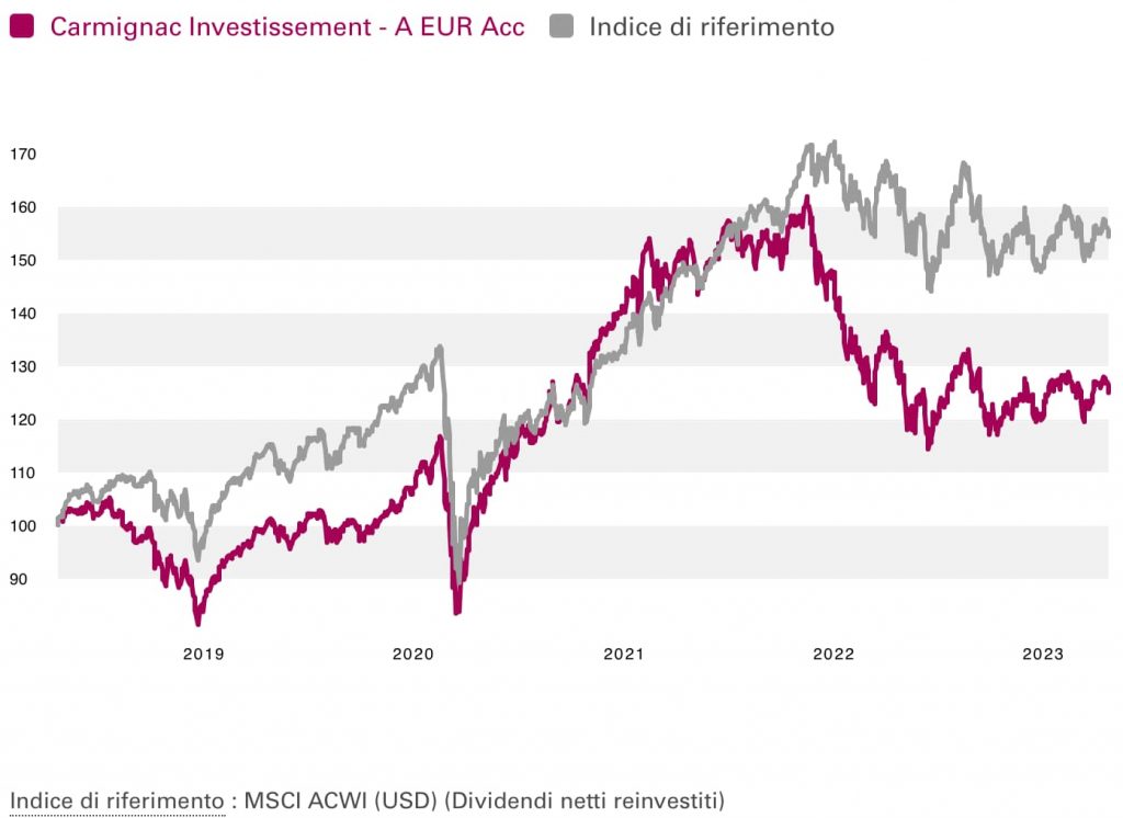 Il Carmignac Investissement A EUR Acc., ISIN FR0010148981, è un fondo d’investimento gestito dalla società francese Carmignac Gèstion. Realtà ricca di blasone finanziario, nata nel 1989 e saldamente in mano ai dipendenti ed alle famiglie fondatrici. Non è quotata alla Borsa di Parigi e non presenta investitori istituzionali all’interno della sua compagine azionaria. Amministra oltre 35 miliardi di euro ripartiti in una trentina di fondi.