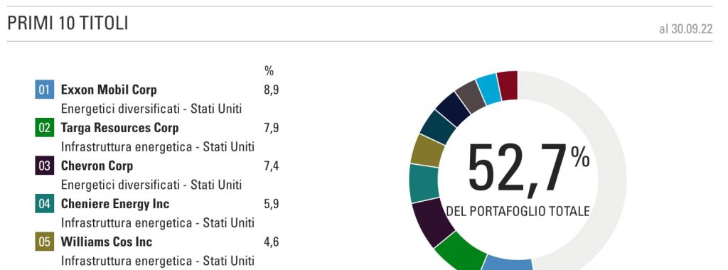 A tale proposito il fondo deterrà prevalentemente azioni o strumenti simili di società energetiche nordamericane operanti nell’area Midstream (nell’ambito petrolifero, per midstream si intende l’insieme dei processi operativi che comprende le procedure relative al trasporto del petrolio dal sito di estrazione al sito di raffinazione e lo stoccaggio del petrolio).