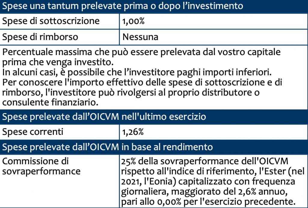 Il livello di spese correnti si ferma all’1,26% di cui l’1,1% attribuibile alla commissione di gestione annuale.