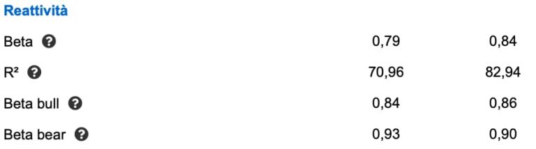 I nostri soliti tre indicatori selezionati per voi ai fini delle nostre analisi sono il Beta, l’R Quadro ed il numero di stelle attribuite dalla società di rating americana, Morningstar.