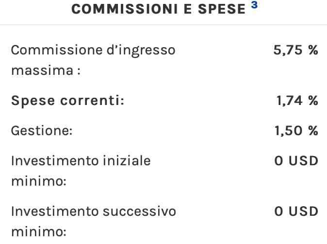 Le commissioni iniziali di sottoscrizione sono del 5,75% ma sono azzerabili o riducibili da parte del Vostro Consulente Finanziario che vi segue.